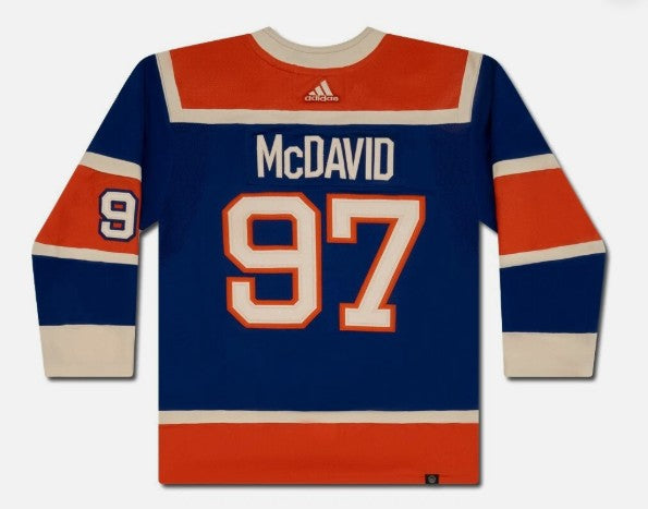 This royal blue authentic Adidas jersey is autographed by McDavid and fully authenticated by Upper Deck, with his signature witnessed as part of their 5-step authentication process.